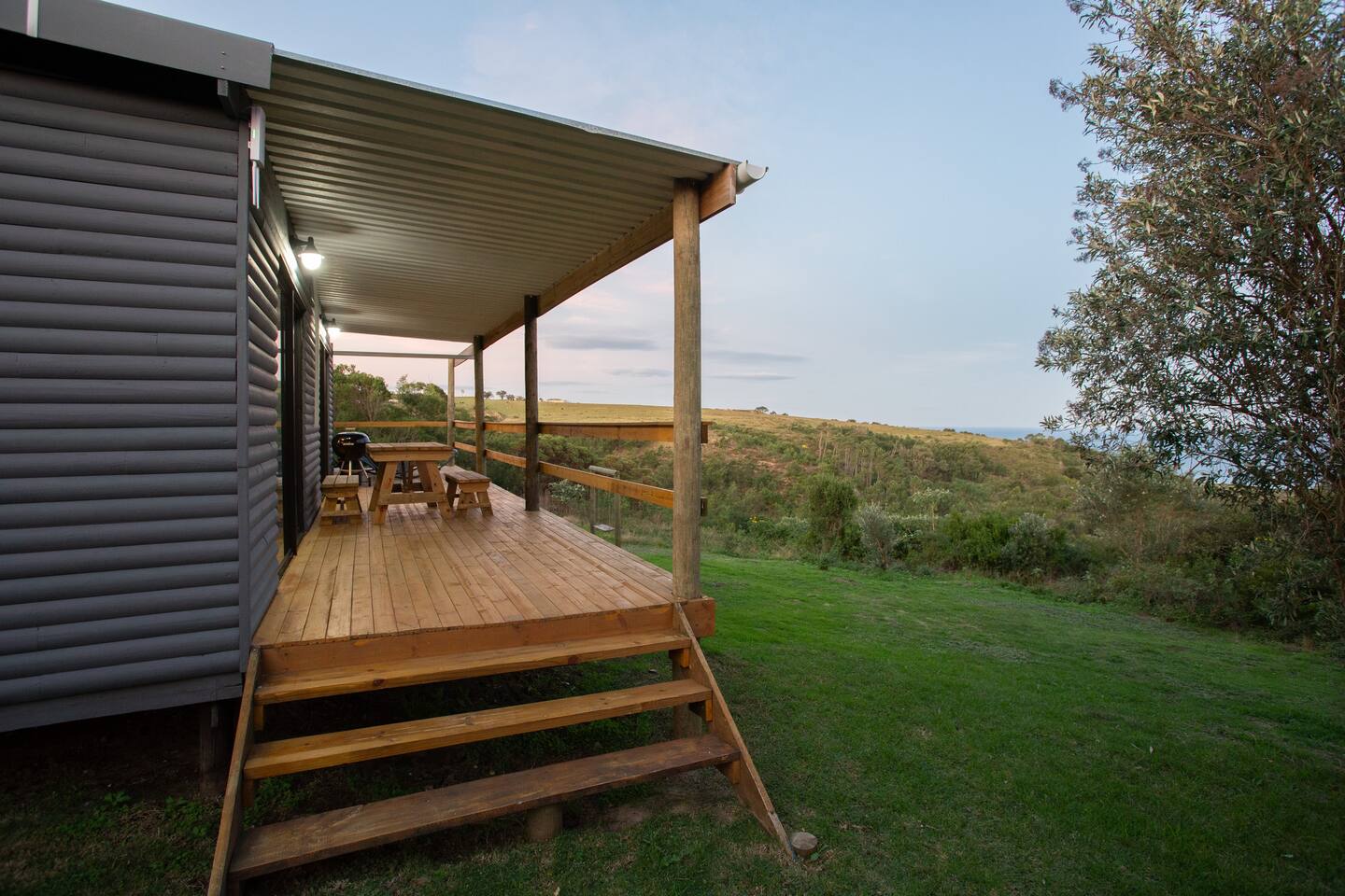 Perched on a guest farm above the sea, our secluded hideaway offers a unique escape from the everyday. Stay in a cozy cabin, experience luxury under the stars in our glamping tent, or unwind in our spacious 3-bedroom guesthouse—each designed for ultimate comfort and serenity.